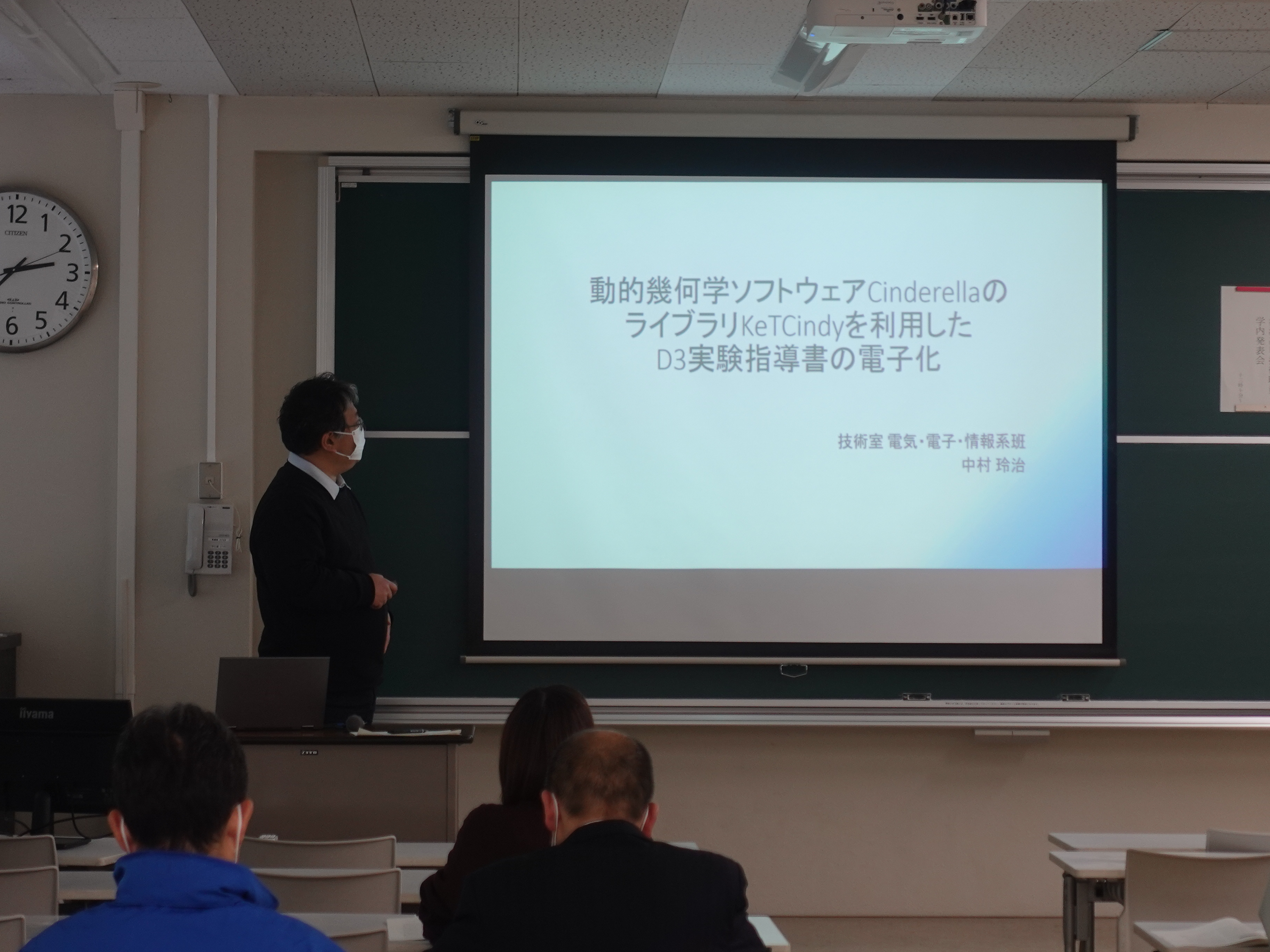 技術職員の日々の業務における改善等の取り組みや研究活動の成果を広く学内の方々に知っていただくことを目的とし、今回は5名の発表を行いました。